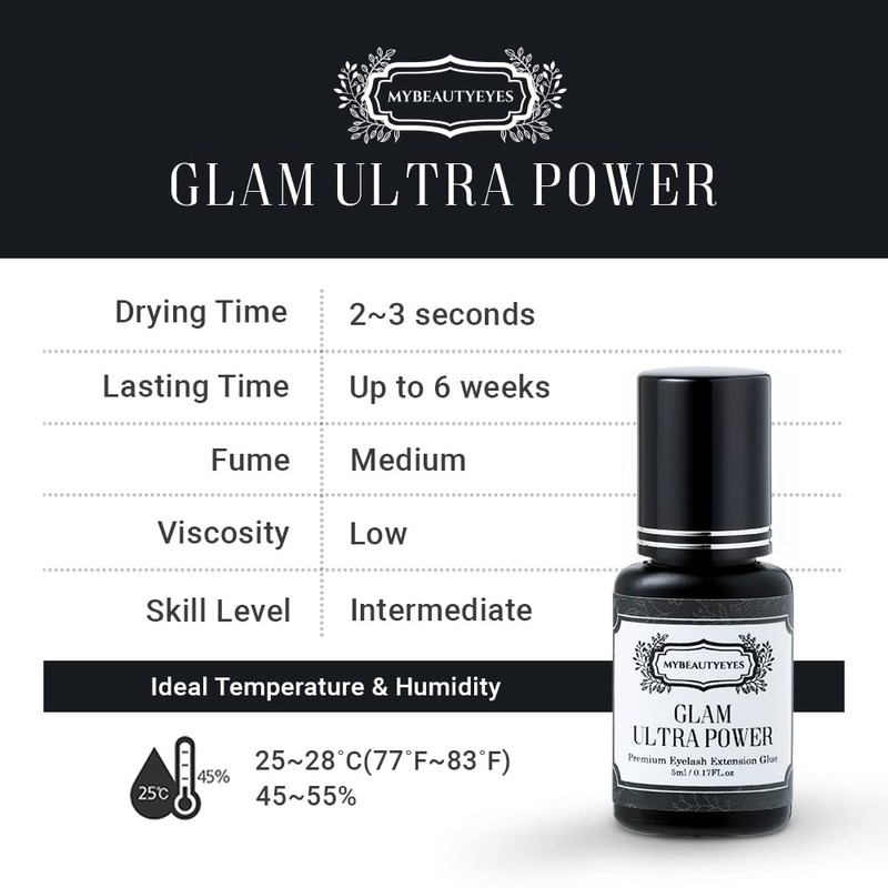Super Strong Ultra Fast Dry Eyelash Extensions Glue Glam Ultra Power / Semi Permanent Eyelashes / Dry Time 2-3 Seconds / Maximum Lasting Power 6 Weeks / Latex Free