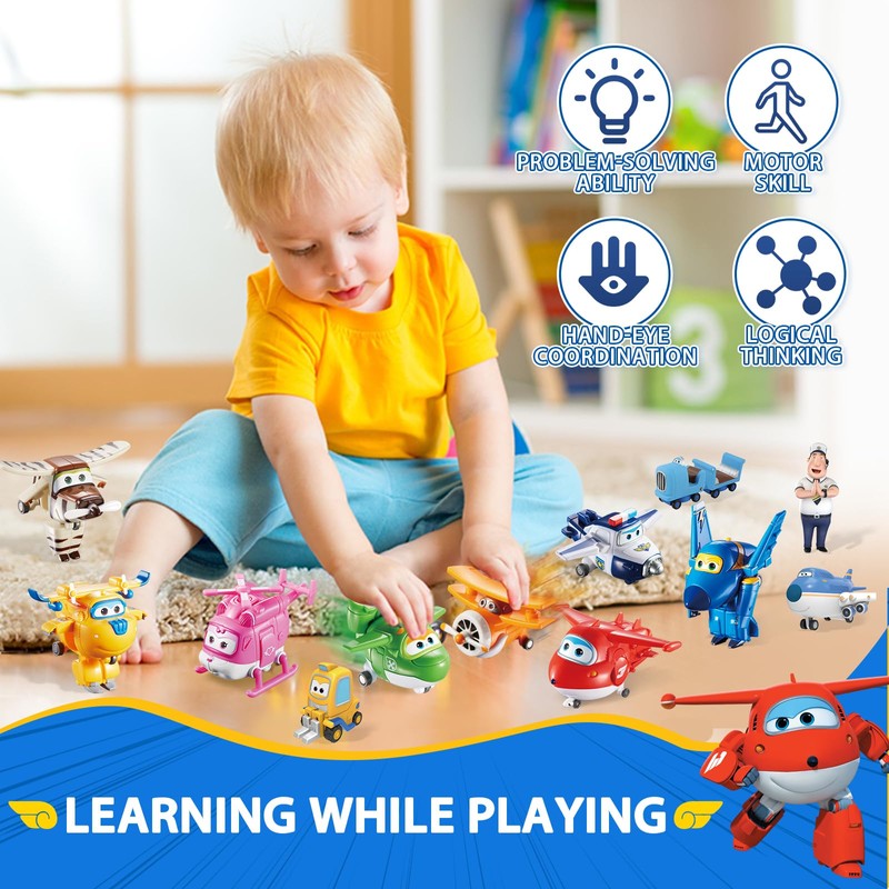Super Wings - 5" Transforming Airport Airplane Toys Collection Playset Vehicle Action Figures | Plane to Bot | Fun Preschool Toy Plane for 3 4 5 Year Old Boys and Girls | Gifts for Birthday Kids