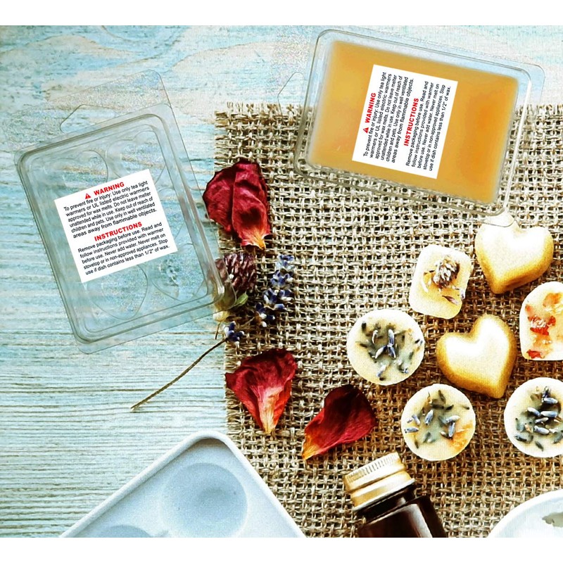 - 【Perfect For Wax Melt Business】Our durable labels conveniently fit on the inside or outside cover of many standard clamshell molds and wax melt packages. The adhesive is strong and sticks well on wax tart packaging. Perfect for all wax melt making and selling business.