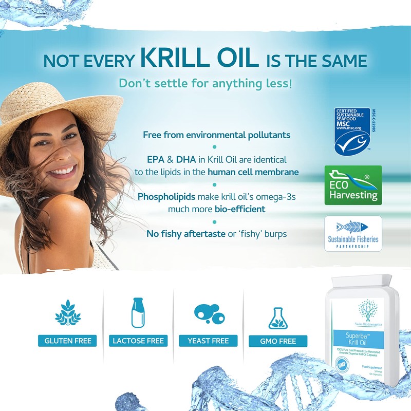 Swiss BioEnergetics Superba Krill Oil Extract 500mg 60 Capsules - 100% Pure Cold Pressed Antarctic Eco Harvested