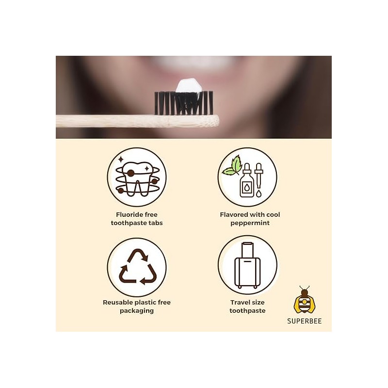 - FLUORIDE - FREE TOOTHPASTE TABLETS - Spearmint mouthwash tablets. Chewable toothpaste fluoride free so as not to damage your teeth and gums. SuperBee cares about your dental health!