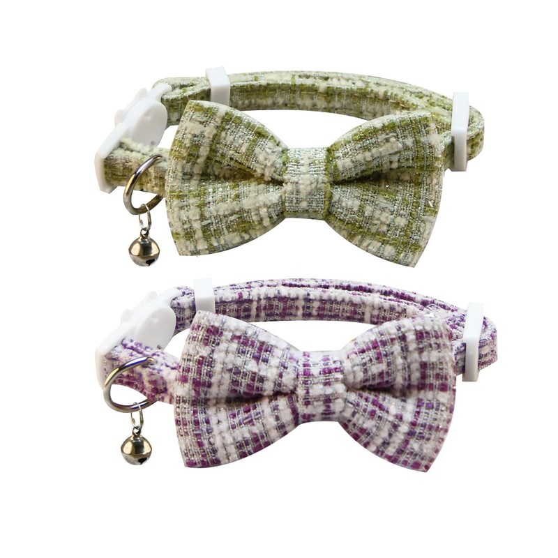 - Cat Collars Breakaway with Cute Bow Bell - 2 Pack Kitten Collar Plaid Cat Collar with Removable Bowtie Cat Collar for Cats Kittens