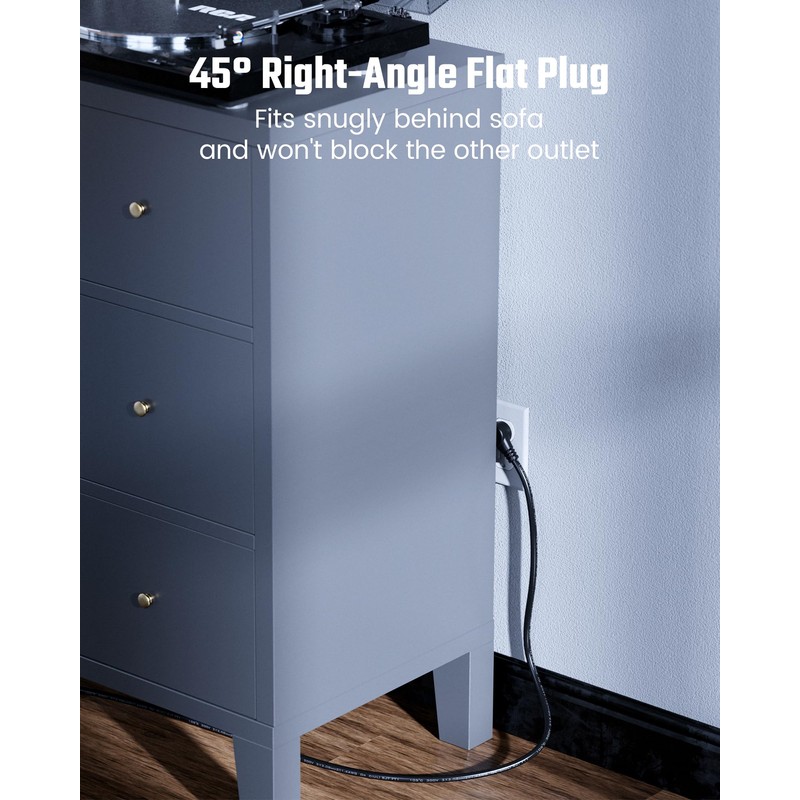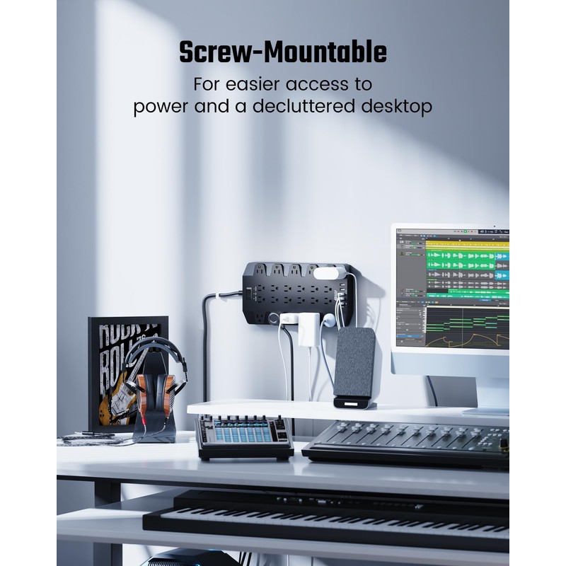 - 【6.5FT Flat Plug Cord & Mountable】 With 4 T-shape mounting holes on the back, and the included 4 screws and 1 drill template, you can easily mount the flat plug extension cord with multiple outlets horizontally or vertically on walls, behind the TV, or under the desk, leaving you a clutter-free working / entertaining environment! At the end of the 6.5ft 14AWG heavy-duty cord, the space-saving 45° angled flat plug fits snugly behind furniture and won't block the other outlet.