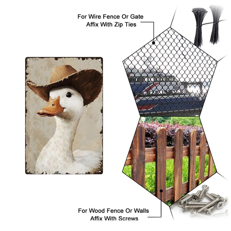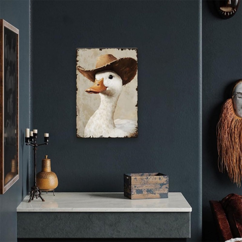 - Cowboy Silly Goose Metallschild:Das Muster des Metallschildes ist eine Gans mit Cowboyhut, das sieht albern aus. Das innovative Design macht es geeignet als Dekoration für Bauernhäuser.