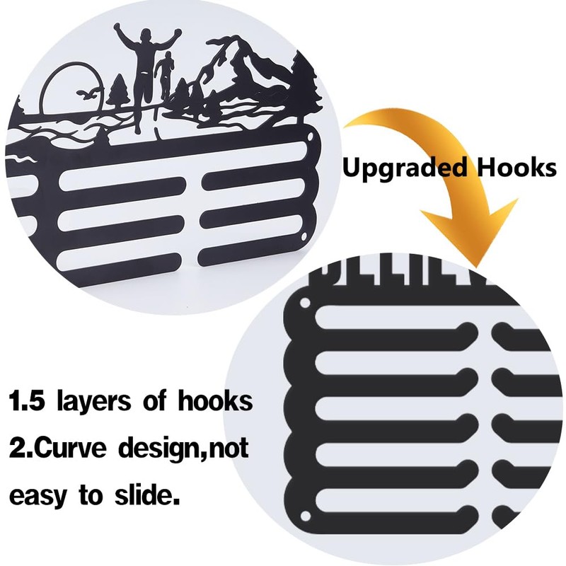 - 5 Rows for More Medals: We listened to the voice of our customers to upgrade the rows of Medal Holder. Now we have 5 rows of 20 hooks for you! In a larger size 40x20cm(15.7x7.9in). Giving more space to hold your medals and show your achievements! A better gift for families and friends.