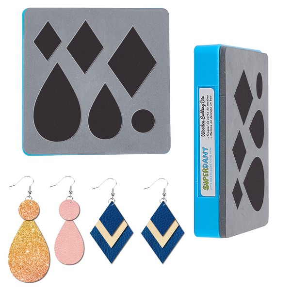 SUPERDANT Wooden Cutting Dies Leather Rhombus Teardrop Pattern Earring Cutting Dies Stencils Moulds Embossing Tool Plastic Protective Box for DIY Scrapbooking Card Craft 4x4in