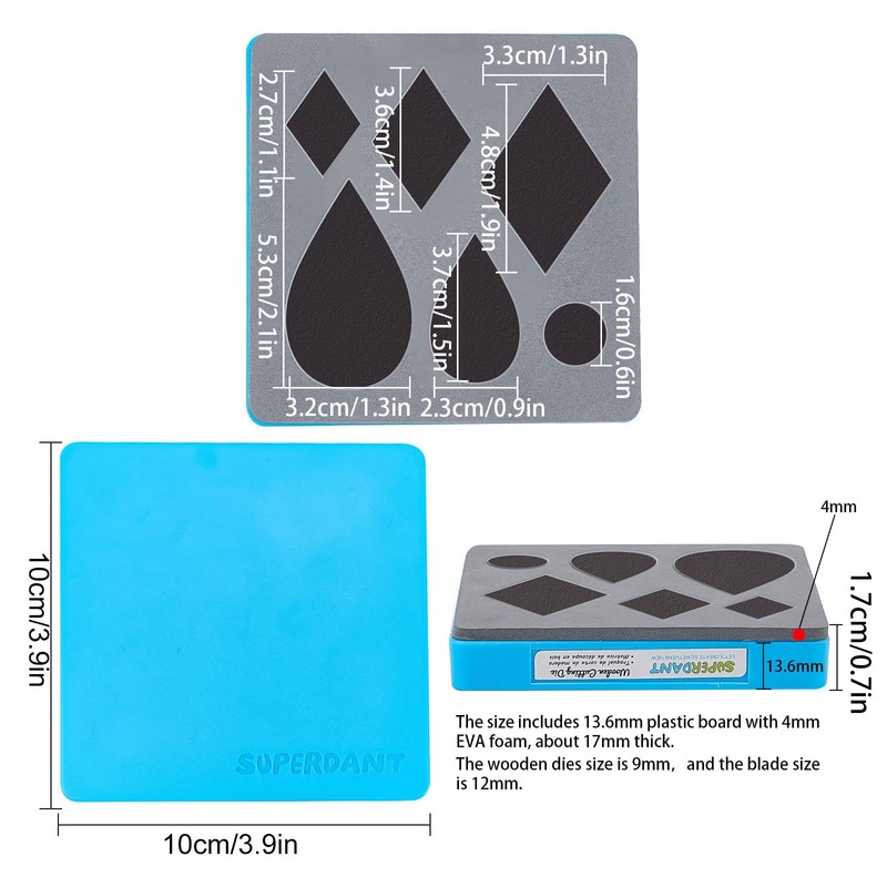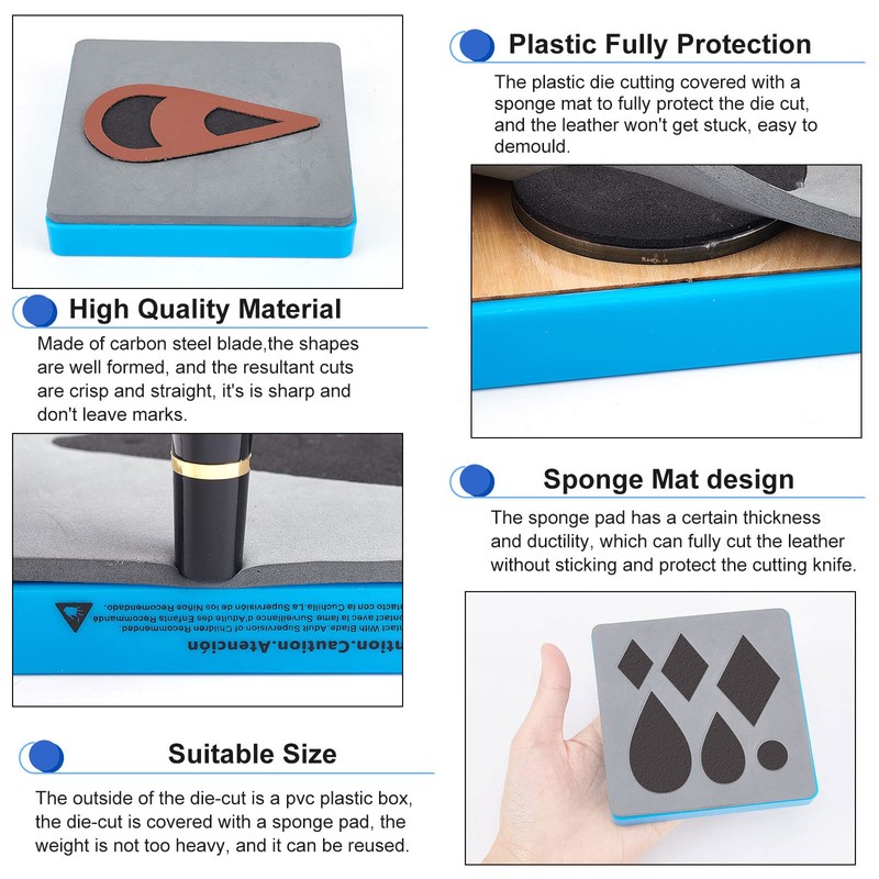 - Size: The plastic shell wood board blade mold size: 10*10cm, 9mm wood board with 12mm steel blade. The wooden base allow the leather die cutter to withstand great pressure to cut thick leather and prevent the die and base fall apart.
