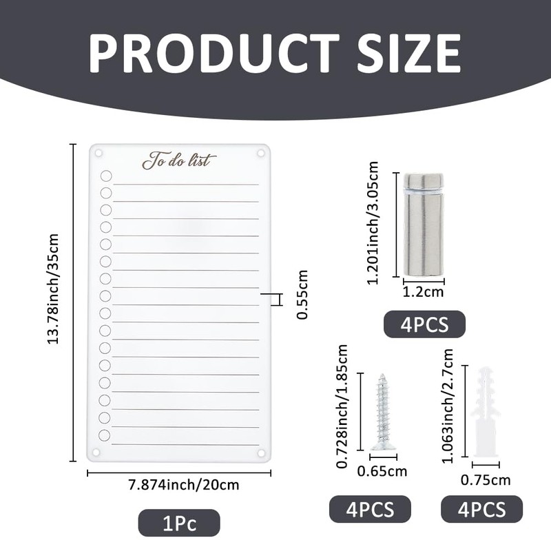 - Package Includes:You will receive 1 set of acrylic To Do List wall calendar, which includes 4pcs columns, 4pcs findings, and 4pcs screws.