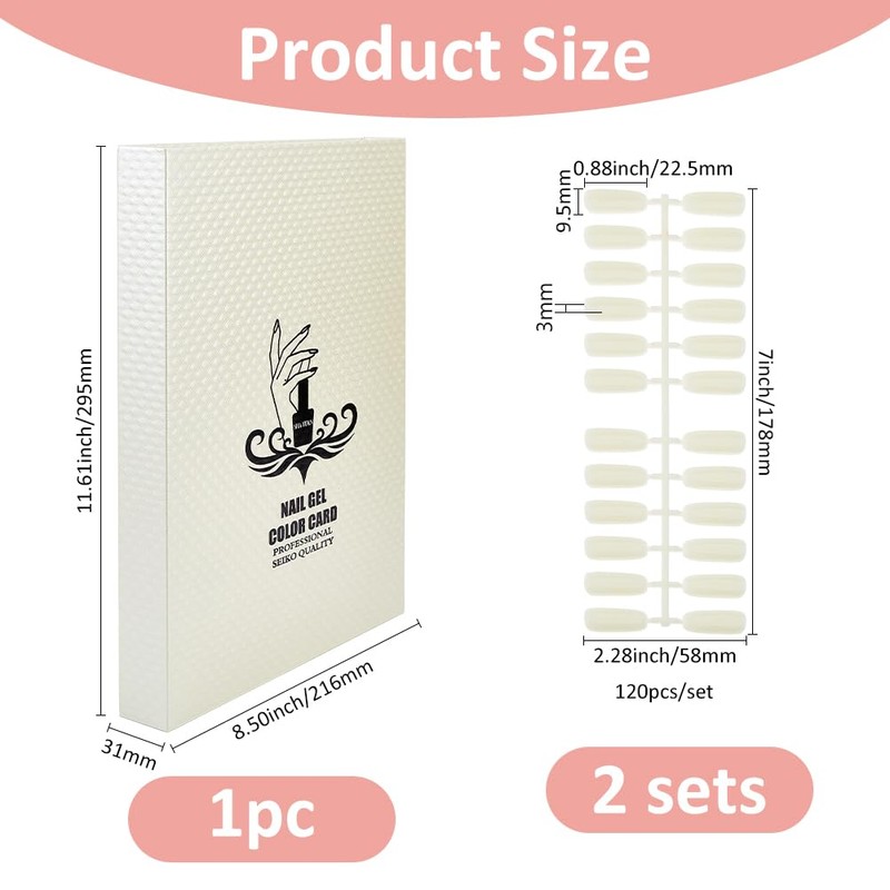 - Größenangabe:Das Nagelfarben-Display-Buch ist 17.8x5.8x0.3cm groß, 23x10mm Innendurchmesser, mit 1.78x5.8cm Nagelspitzen. Eine komplette Auswahl an Farbmuster für die einfache Präsentation Ihrer Nagellackfarben.