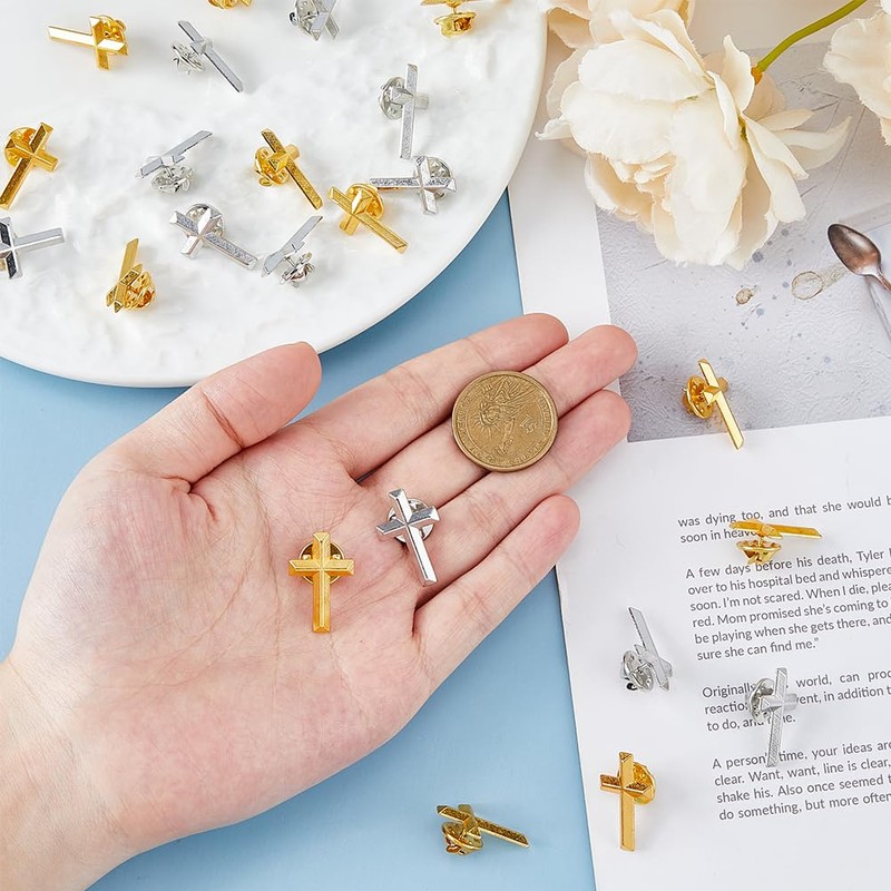 - 24 Pieces At Once:The set contains 24 crosses, 12 in gold and 12 in silver, each with a safety pin.