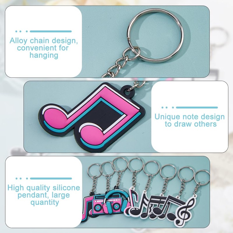 - Quality Material: Maade from durable PVC and featuring sturdy iron findings, these music keychains offer both aesthetic appeal and longevity. Each keychain is designed to withstand daily use while maintaining its vibrant look.