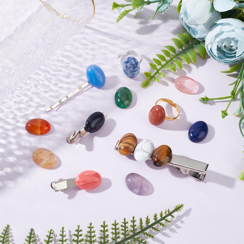SUPERFINDINGS 35 Styles Gemstone Cabochons 18x13mm Natural Synthetic Stone Cabochons Crystal Flat Crystal Beads Without Hole for Jewelry Making
