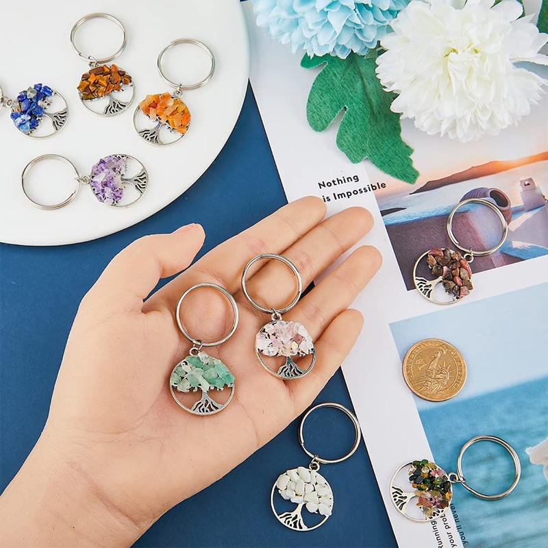 SUPERFINDINGS 36Pcs 9 Styles Tree of Life Keychain Natural Crystal Stones Handmade DIY Keychain Charm Pendant Gemstones Key Chain Charm for Handmade DIY Bag Charms Keyring
