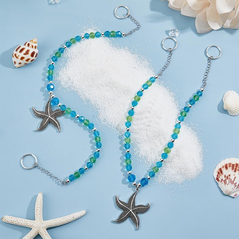 SUPERFINDINGS Pack of 2 Glass Curtain Tiebacks Curtain Holdbacks with Alloy Starfish Pendants Ocean Theme Decorative Tiebacks for Home Bedroom Office Curtains Curtains 45 cm