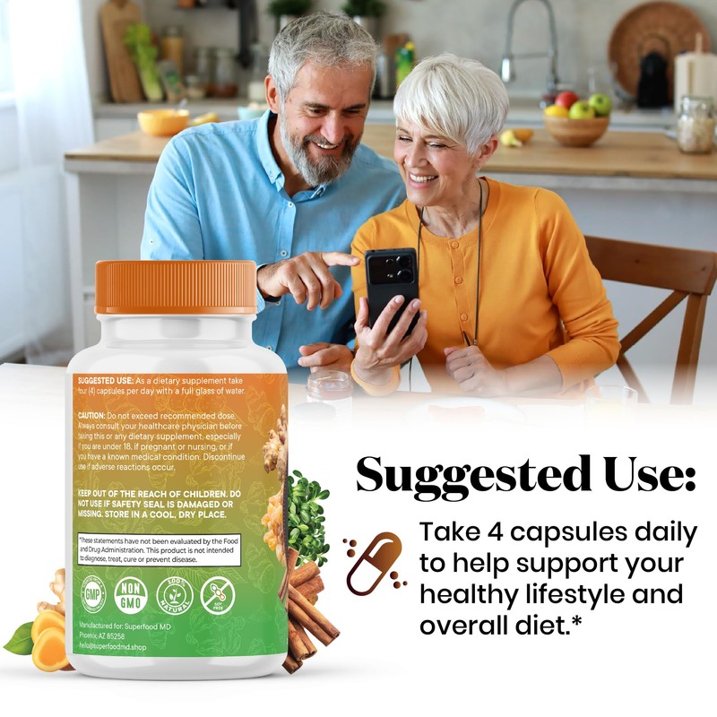 - Advanced Moringa with Turmeric Curcumin, Black Pepper & Ginger Supplements for Both Women and Men C Our formula blends Turmeric and Ginger with Moringa Leaf, Boswellia Serrata, and Saffron, delivering outstanding results. While typical joint health supplements may include just Turmeric and Ginger or Moringa capsules, Superfood MD has developed a more powerful all-in-one supplement for enhanced effectiveness.