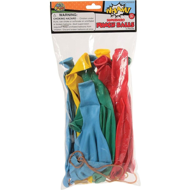 Great for party favors and prize boxes! Size: 8.75 Inches Long (Deflated) Super Hero/Comic Book Punching Ball Design Assorted Colors Ship At Random Made Of Latex * Includes Large Rubber Band Handles