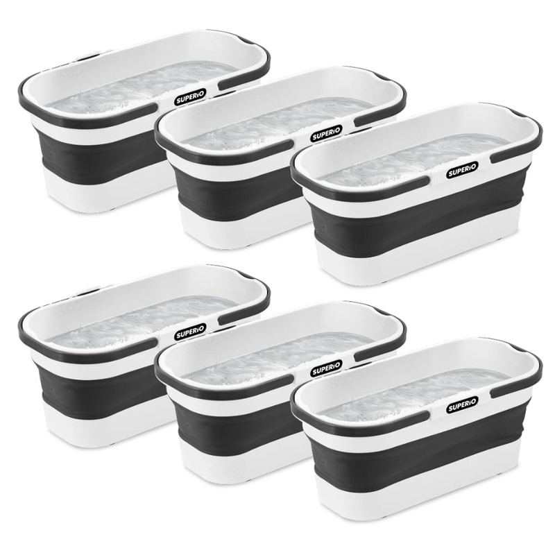 Superio Fold N' Go Mop Buckets with Wheels 6-Pack - Collapsible Cleaning Bucket, 10L, Portable Water Pail for Home, Car, and Outdoor Use