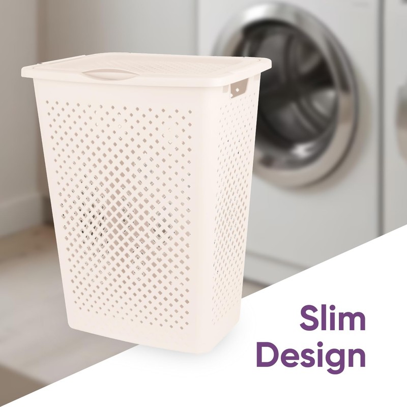 Superio Gradient Hamper with Lid - 60L, Modern Design, Perforated, Slim & Sturdy, Ergonomic Handles - Cream