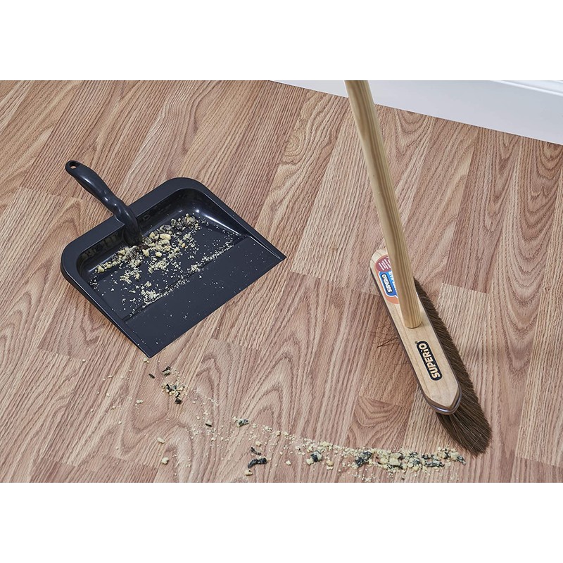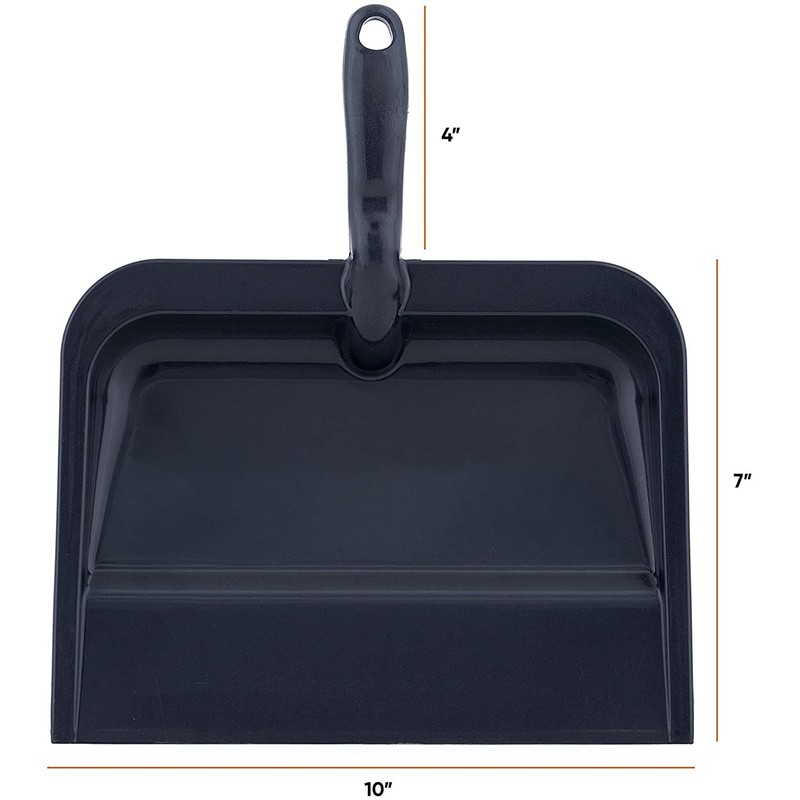 Superio Heavy Duty Dustpan - Durable Plastic with Comfort Grip Handle, Lightweight Multi Surface Dust Pan for Easy Sweep Broom 10 inch Wide (Black)
