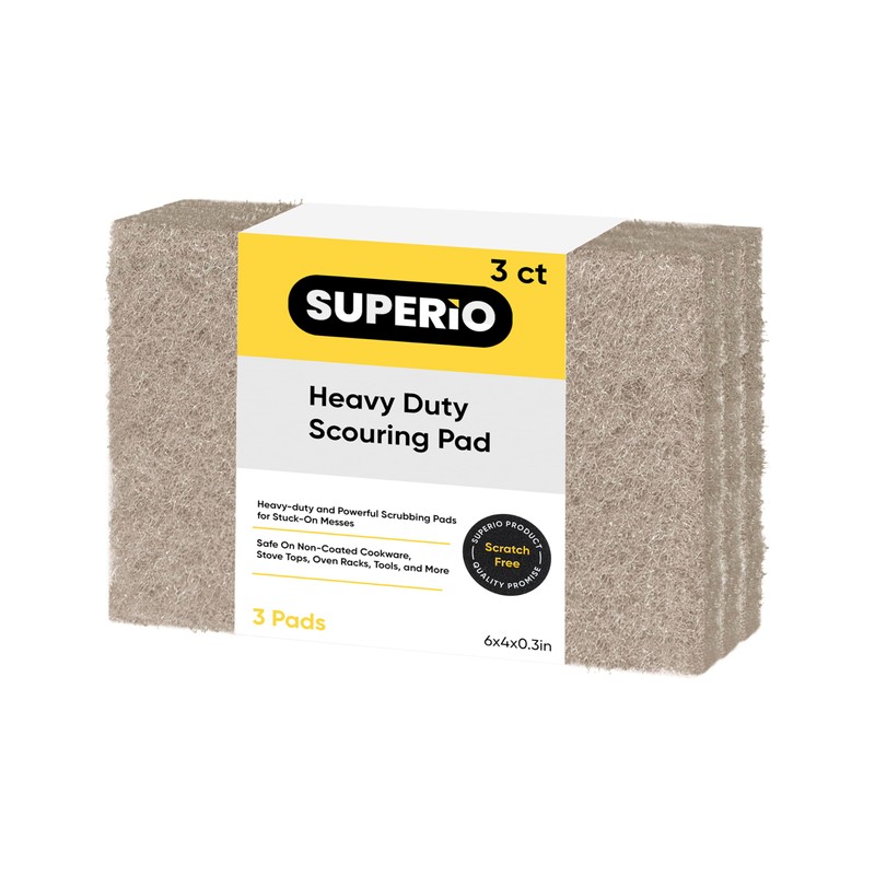 Superio Scouring Pad Non-Scratching Scrubber Non-Scratch Cleaning Scrub Pads Heavy Duty Scouring Pad Reusable Kitchen Scrubbing Pad Pack of 3 Natural