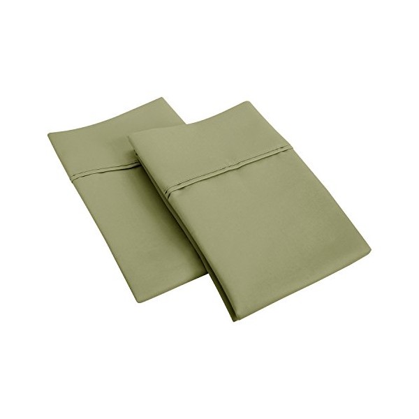 SUPERIOR 1200-Thread-Count Pillowcases Set, Cotton Blend, Standard, Sage