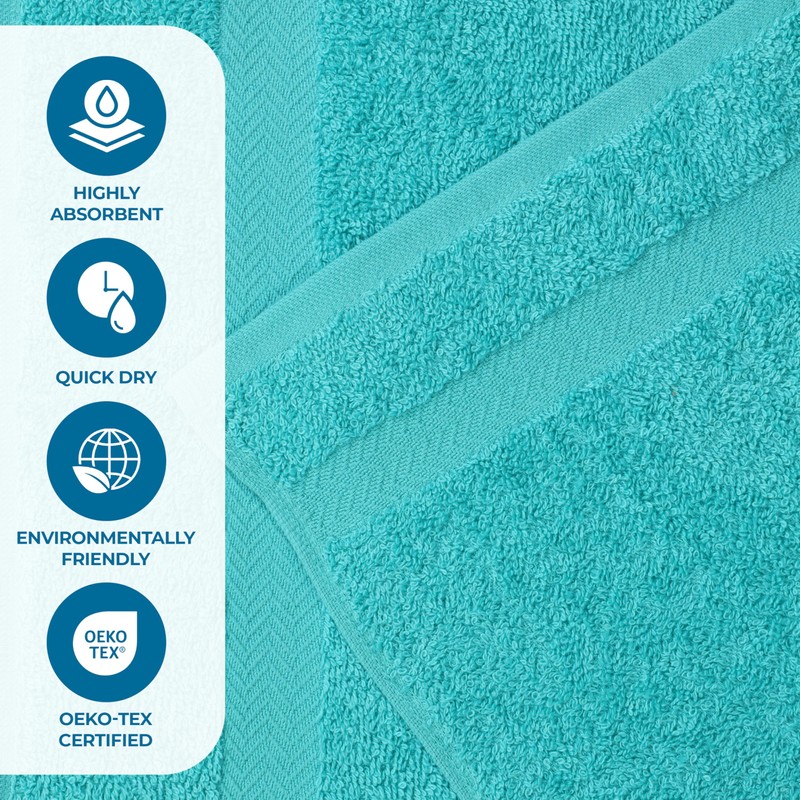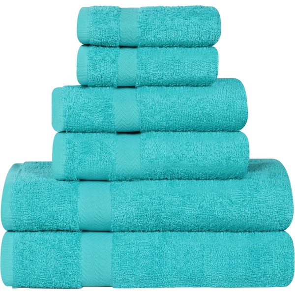 Superior 6-Piece Cotton Assorted Towel Set, Includes 2 Face/Washcloths, 2 Hand, and 2 Bath Towels, Lightweight Essentials, for Home, Gym, Beach, Bathroom, Quick Drying, Franklin Collection, Turquoise