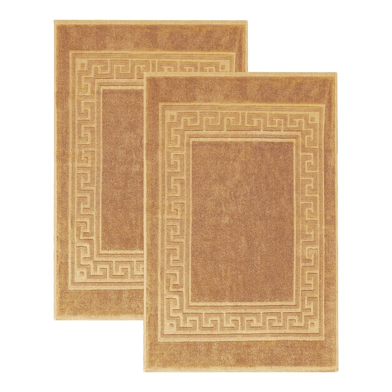 **Affordable Luxury Linens** Our luxurious bath mats provide a quick and beautiful update to any bathroom or spa décor. Made of 100% Premium Cotton that is combed to remove all imperfections, these classic geometric bath mats are made to last and are able to go through the washing machine without any wear and tear or fade of color. Each set comes with two bath mats: perfect for shared bathrooms, or for homes with multiple bathrooms. The pure cotton construction means that these bathroom floor mats are more absorbent than microfiber bath rugs, and dry faster than memory foam bath mats. Available in 15 gorgeous colors, these bathroom towel mat sets will look beautiful in your master bathroom or guest bathroom. Coordinating luxurious hotel & spa quality 3 Piece Sets, 6 Piece Sets, Face Towels, Hand Towels, Bath Towels, and Bath Sheets are available separately. **Heritage** We have been manufacturing fine linens for over 40 years. We make everything from towels and bath robes, to comforters and mattress toppers, sheets, duvets, pillowcases, and bedskirts, and even area rugs. Our wide range of colors, patterns, and price points ensures that every one of our customers will be able to find something they'll love. We are experts in manufacturing high quality textiles and pride ourselves on only producing the finest products. **See what our customers have to say:** "This is a very well made bath mat, thick and absorbent" "Amazing product of very high quality. Lasts forever.. Beats anything else I've ever seen. Best of all does not slip in bathroom floor" "Gorgeous, luxurious and PLUSH! The Greek key border is well done. If your bath decor is 5 star hotel, you MUST get these" "I've had them for about two months now and I love them. These are very well made and launder great!" "Exceptional as usual. Great color. Thick, great size. I LOVE being able to toss them in the washer and keep our bathroom as clean as possible... I will be buying more" "Wow!!! These are the best bath mats ever… Bought two and will purchase more" **And try them for yourself!**