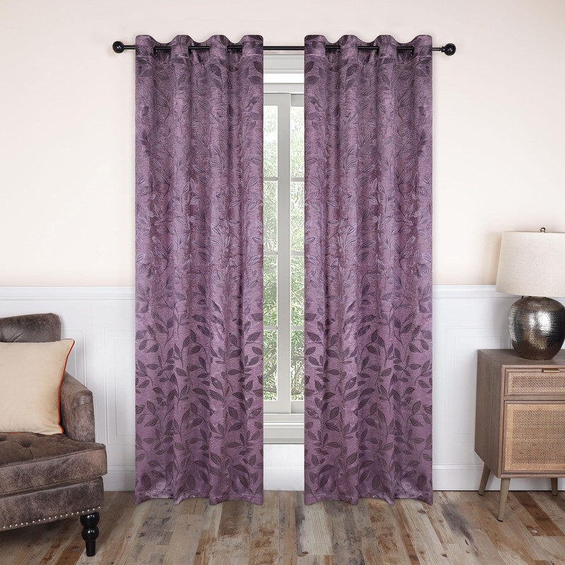 Superior Blackout Curtains, Room Darkening Window Accent for Bedroom, Sun Blocking, Thermal, Modern Bohemian Curtains, Leaves Collection, Set of 2 Panels, Rod Pocket - 52 in x 72 in, Wisteria