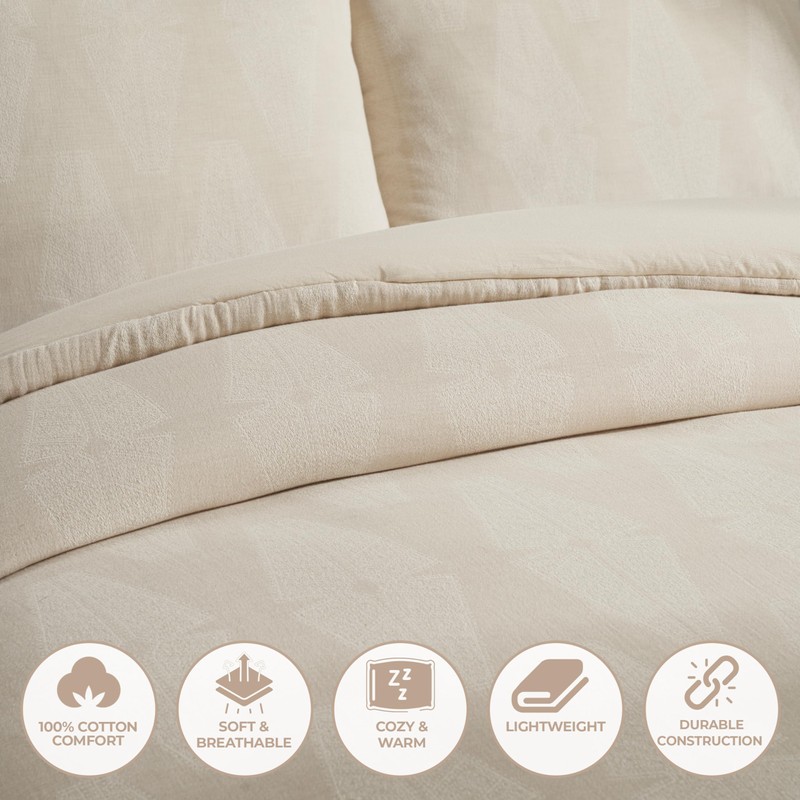 Superior Cotton Comforter Set, Breathable, Soft, Modern Fluffy Oversized, All Season Bedding, Bedding Sets, Includes; 2 Matching Pillow Shams, Woven Diamond Lattice, Queen (88" x 92"), Beige