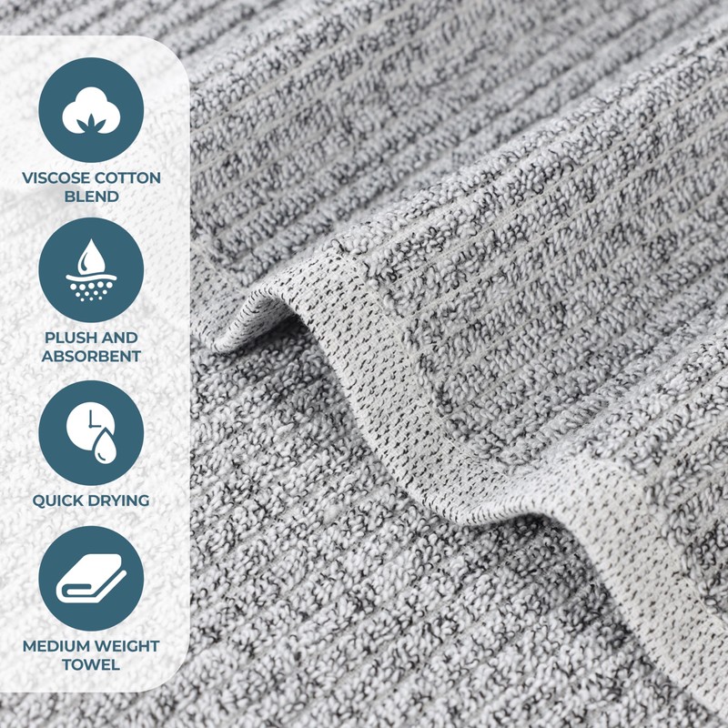 Superior Destin Viscose Cotton Blend Medium Weight Bath Sheets, for Bathroom, Shower, Spa, Plush, Quick Dry, Ultra-Soft Towels, Essentials, Ribbed Design, Oversized Towels, Set of 2, Charcoal
