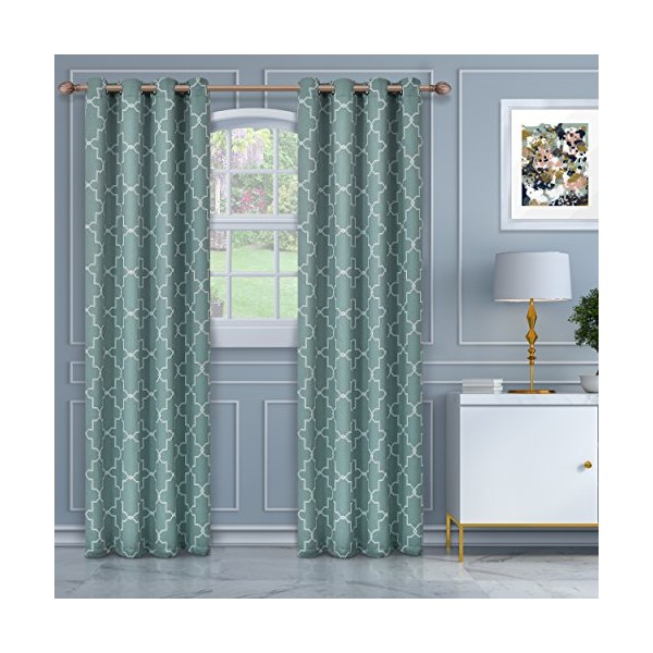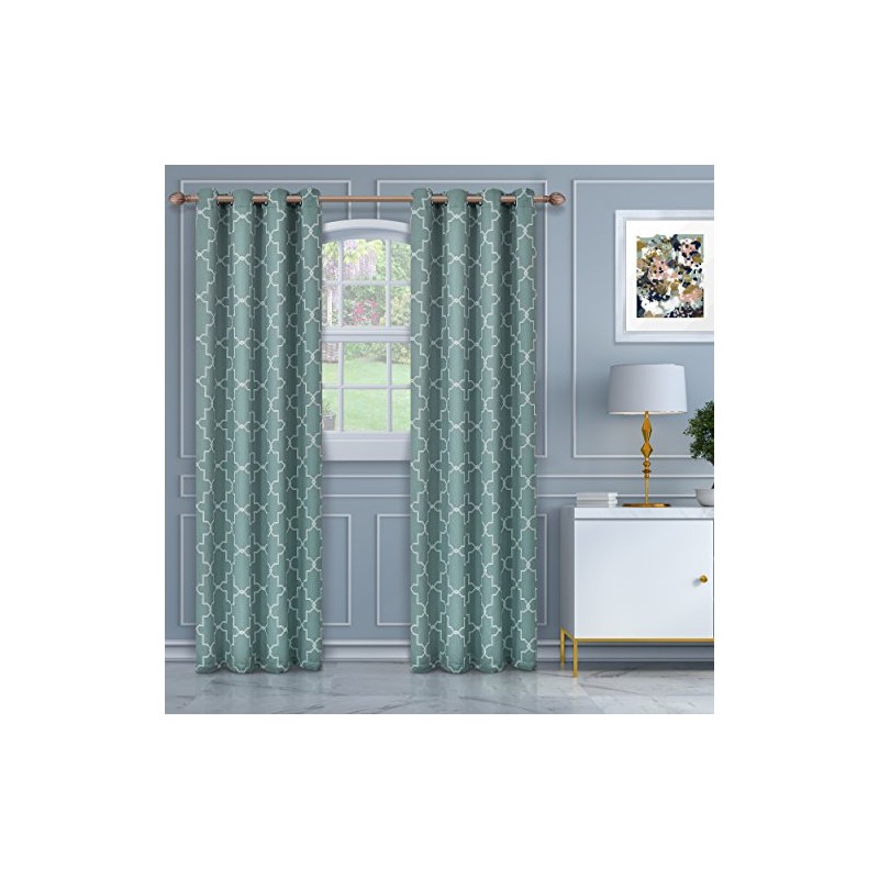 SUPERIOR Imperial Trellis Blackout 2 Panel Curtains (52X84)-Teal