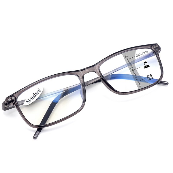 Superb Lightweight Progressive Multifocus Reading Glasses Men Aluminum Arm TR90 Frame Blue Light Blocking Multifocal Computer Readers Spring Hinge No Line (Distance Range 20ft) +2.5