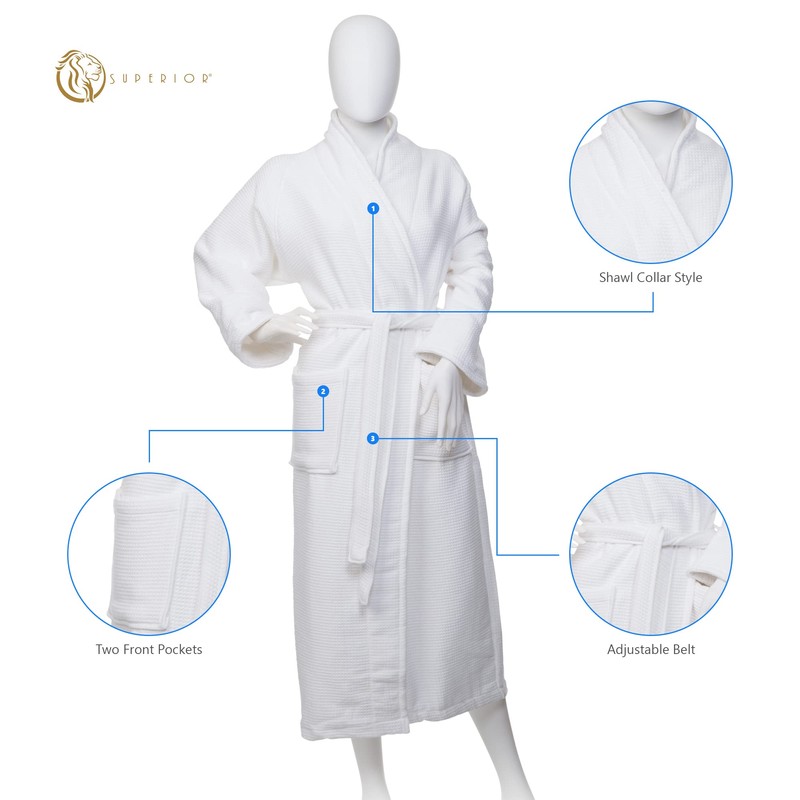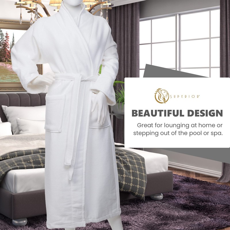 Superior Long-Staple Cotton Unisex Waffle Weave Bath Robe - White, Large