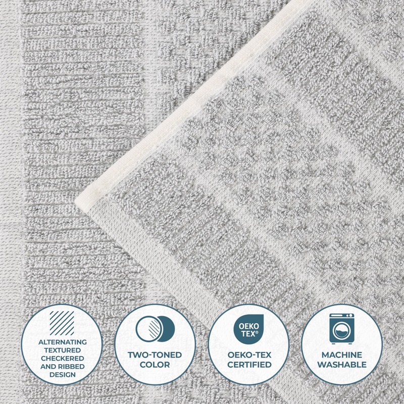 Superior Naples Viscose Cotton Blend Medium Weight Towels, for Bathroom, Shower, Spa, Plush, Quick Dry, Ultra-Soft Towels, Bath Essentials, Ribbed Design, 9 Piece Assorted Towel Set, Platinum