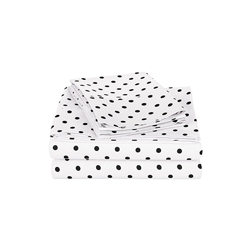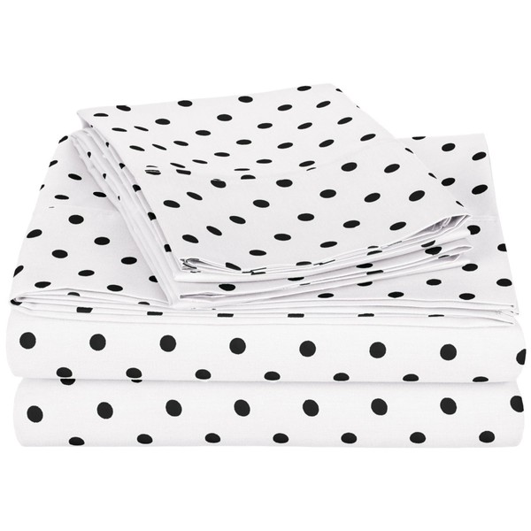Superior Polka Dot Sheet Set, 600 Thread Count Cotton Blend Bedding Sets, Soft and Wrinkle Resistant Sheets with Deep Fitting Pockets - Full, White