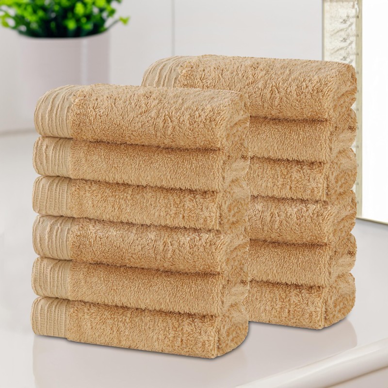 Superior Rayon from Bamboo Blend Face Towel/Washcloth Set, Luxury Quick Dry, Small Facial Towels, Spa, Hotel, Home, Bathroom Basics, Plush Soft Absorbent, Luxury Quick Drying, Set of 12, Gold