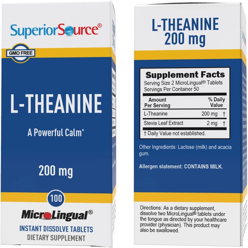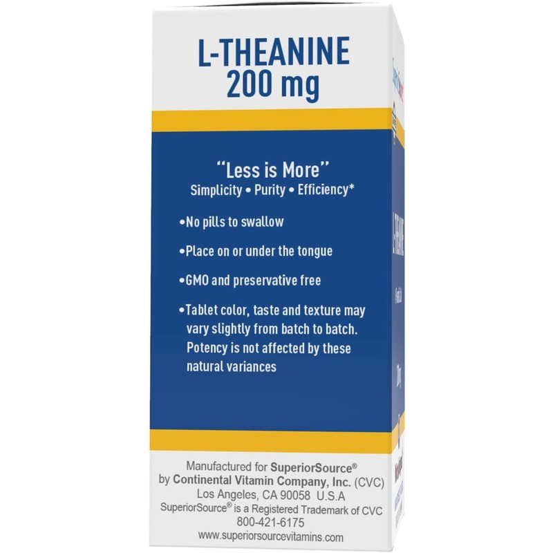 Enjoy your wellness journey with Superior Source L-Theanine 200 mg. Our high-quality L-theanine supplement is crafted to support your brain health and aid better sleep naturally. Derived from amino acids found in tea leaves, this L-theanine supplement is a trusted choice for those seeking relaxation and overall health support. Support brain function with our L-Theanine 200mg tablets, part of our comprehensive range of brain supplements. This brain health supplement for adults supports the regulation of neurotransmitters, supporting better sleep and relaxation throughout the day. Whether you're aiming to support concentration or sleep, our L-theanine supplement seamlessly integrates into your daily routine alongside other health supplements. Superior Source ensures purity and potency in every batch, providing a reliable sleep supplement that also complements your lifestyle needs. Embrace our L-theanine supplement, designed to support both brain and body health. Superior Source MicroLingual vitamins are bariatric- and senior-friendly. Operating from a 100,000-square-foot manufacturing facility, Continental Vitamin Company was founded by Ron Beckenfeld in 1969. With a state-of-the-art GMP-certified facility, CVC's exceptional Superior Source product line has earned the trust of the natural product community with a growing list of over 100 products, including MicroLingual tablets. The company has been a member of the Natural Products Association since 1997.