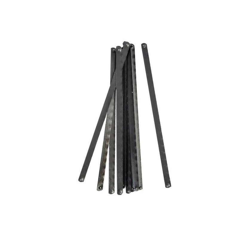 'Mini hacksaw replacement blades, PK 10, overall length 6 in, construction Steel, function cuts wood, plaster, steel, brass in tight quarters, package quantity 10'