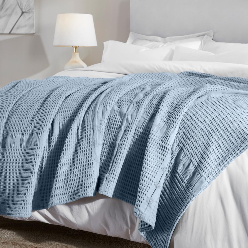 - MODERN DESIGN: The stylish design of this blanket features a waffle, geometric design; Choose from Light Blue, Platinum, Sage, and White color options to match your Modern, Traditional, Farmhouse, or Contemporary master or guest bedroom decor