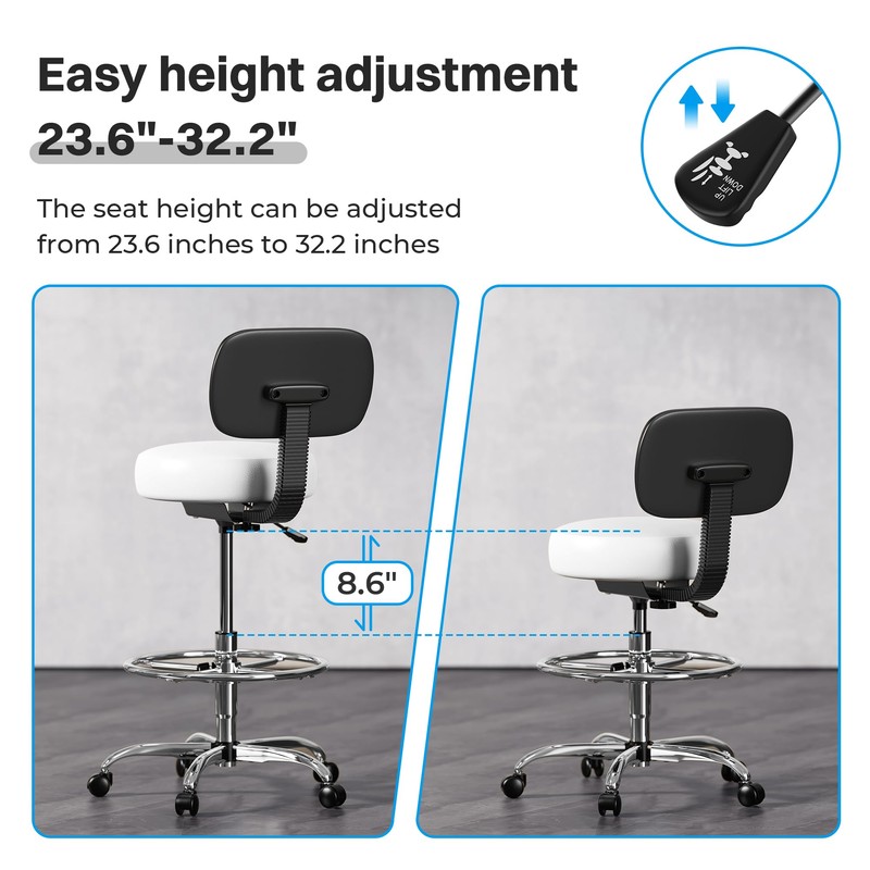 SUPERJARE Drafting Chair with Back, Adjustable Foot Rest Rolling Stool, Multi...
