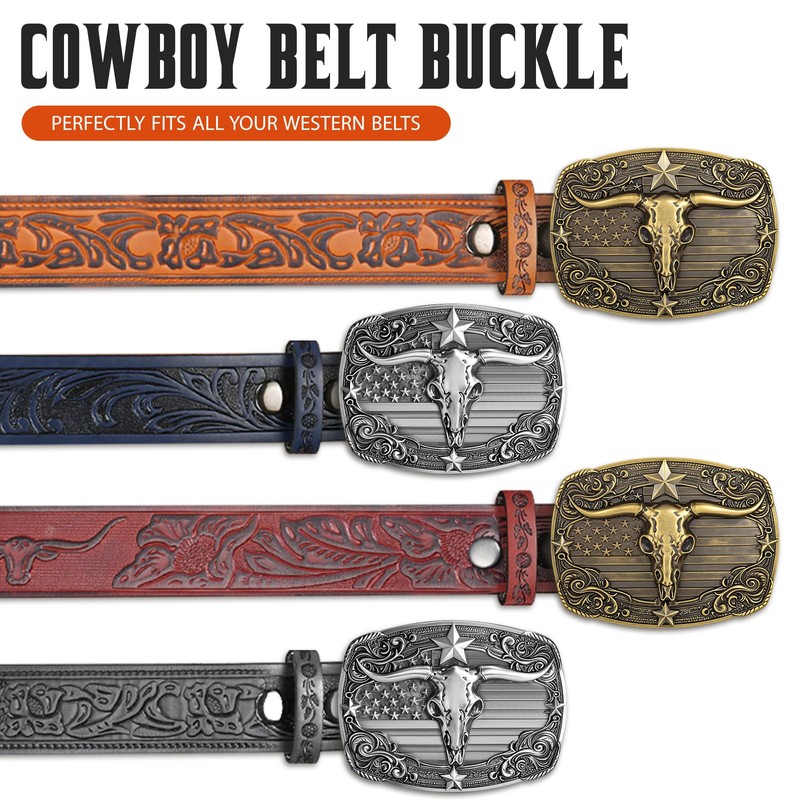 - MENS WESTERN BELT BUCKLE LIGHTWEIGHT & SUITABLE FOR VARIOUS BELTS: Our belt buckle men & belt buckles for women are suitable for belts of various widths, making it easy to use. The patriotic Longhorn theme design make it a standout cowboy buckle for festivals, ranches, or gifting to western men. These big belt buckles men are compact and lightweight, which will not burden the waist and make it more comfortable to wear!