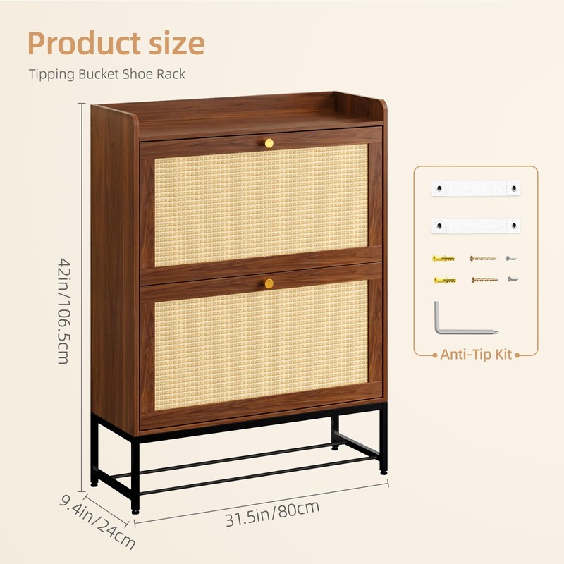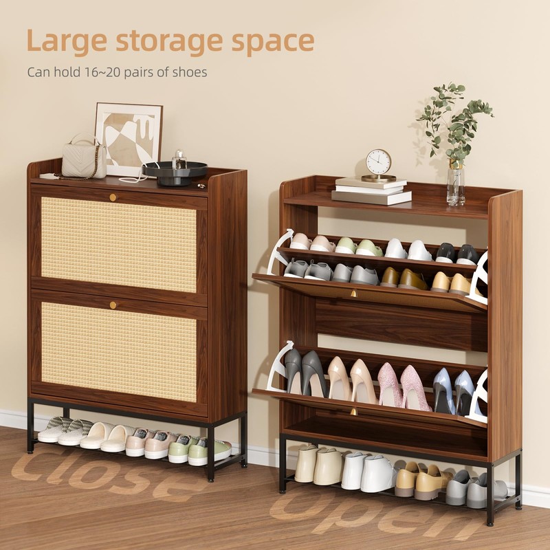 - Vintage Hidden Shoe Cabinet: A hidden shoe storage cabinet with 2 flip doors, featuring a traditional rattan finish that adds a vintage touch to any home. Perfect for entryways, hallways, living rooms, or porches, it provides a neat and space-saving solution.