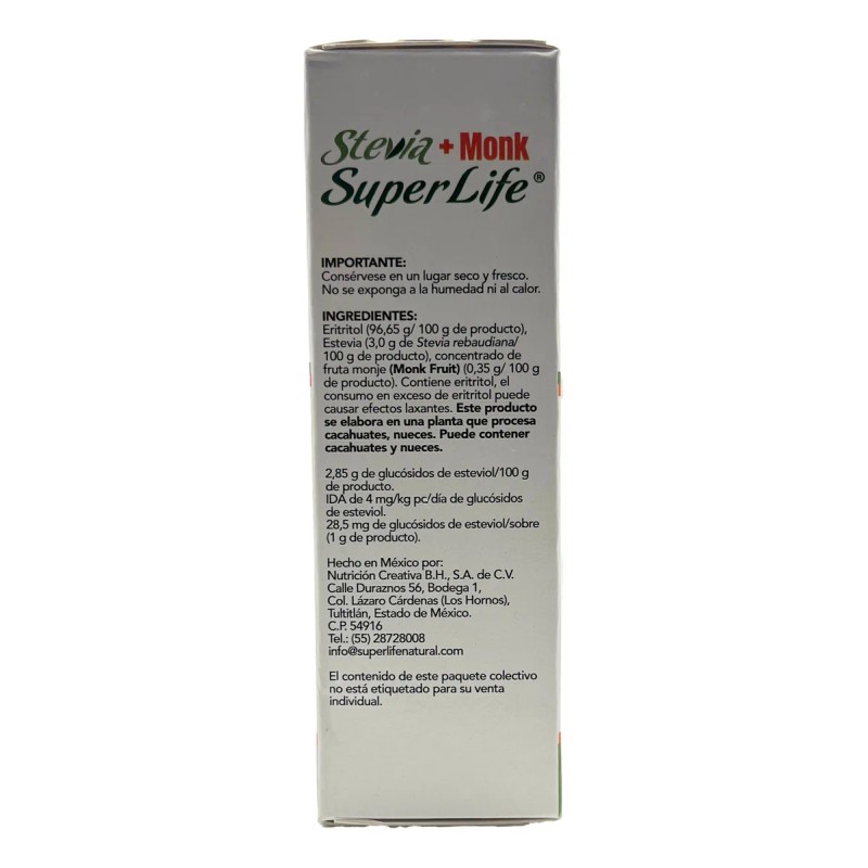 SUPER LIFE® STEVIA + MONK SIN AZÚCAR - SOBRES DE 1G C/U - 150 SOBRES