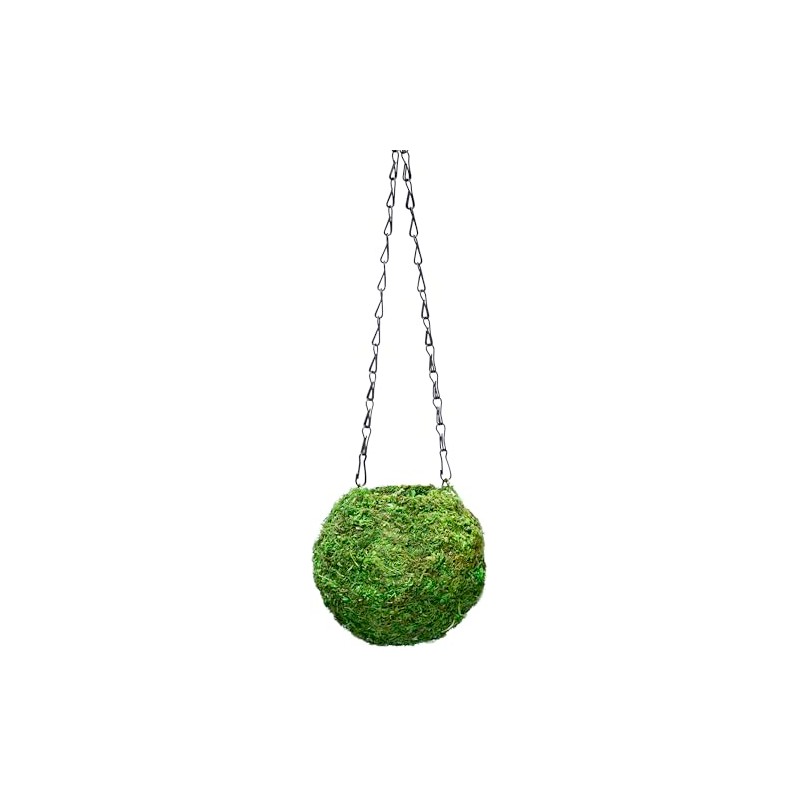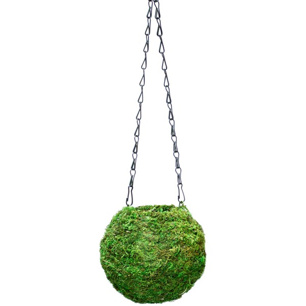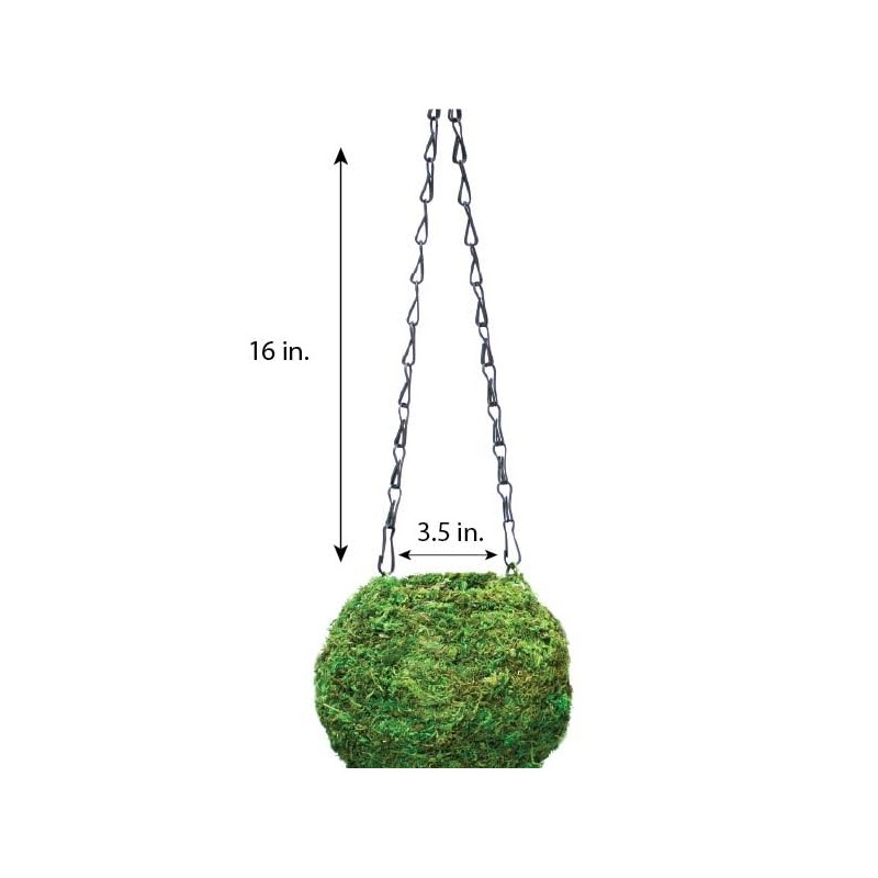 What is a Kokedama? Kokedama literally translates to "Moss Ball" in Japanese! It is a tradition in Japanese gardening that wraps a plant's root ball in moss for it to be hung or mounted on a pedestal. Kokedamas look beautiful with orchids, bromeliads, bulbs, succulents, ivy, ferns, or any flowering plants! Our Kokedama is made from our Moss Vine and ready for planting with any soil or moss. They can be used indoors or outside and look very elegant in multiples! SuperMoss (29348) Kokedama Planter, Fresh Green, 6in Diameter.