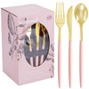 Supernal 102Pcs Pink Plastic Silverware, Gold Disposable Utensils with Pink Handle, Elegant Gold Plastic Silverware Set Includes 34 Forks, 34 Spoons and 34 Knives for Party & Wedding, Mother's Day