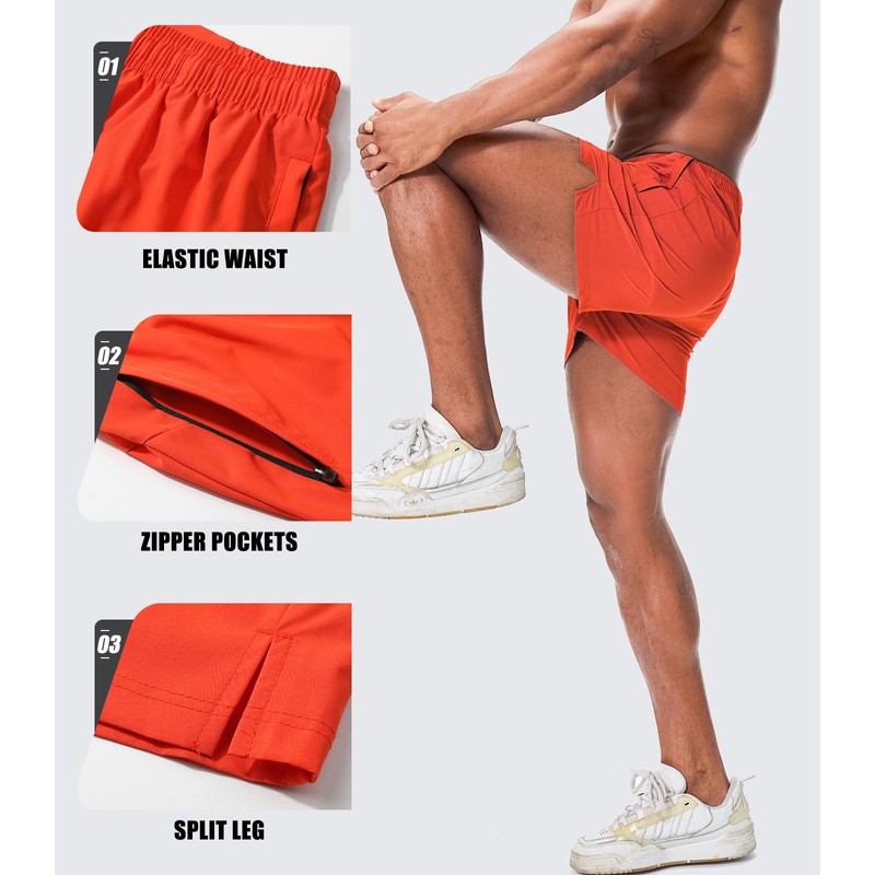 Superora Men's Running Shorts with Water Resistant Rear Pocket - Quick Dry, Comfortable and Stylish Athletic Shorts Orange
