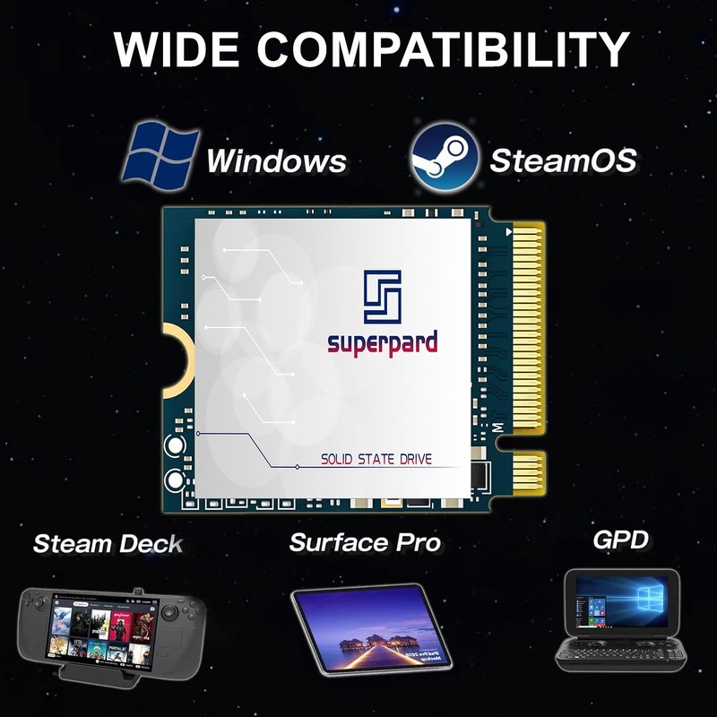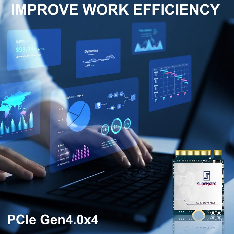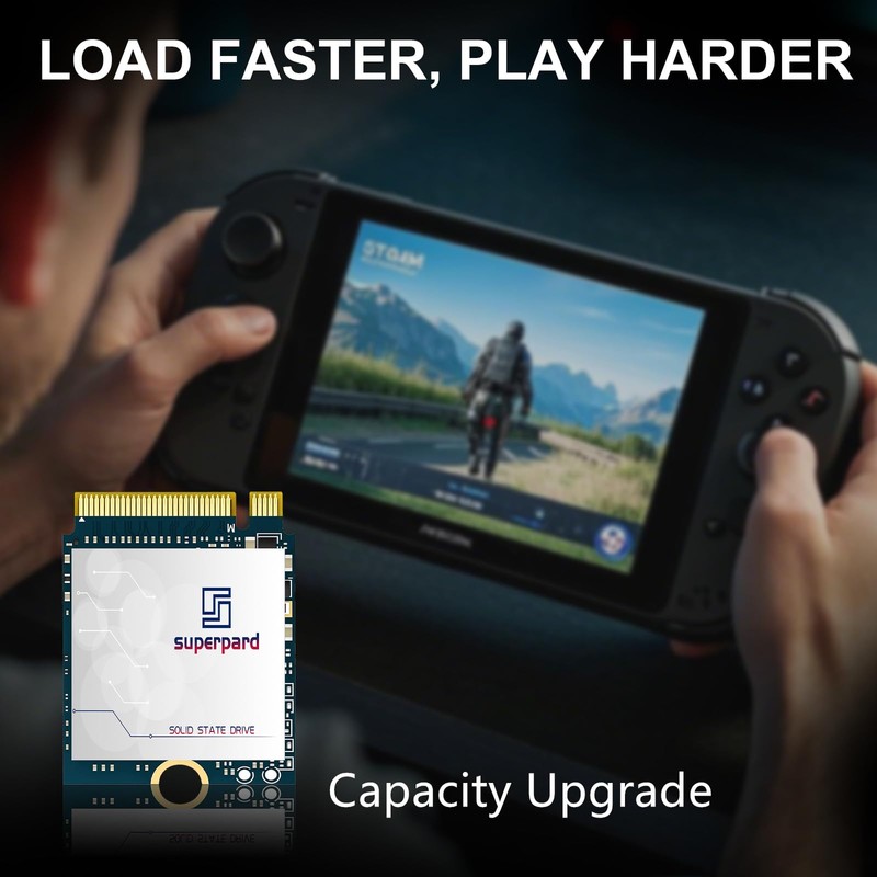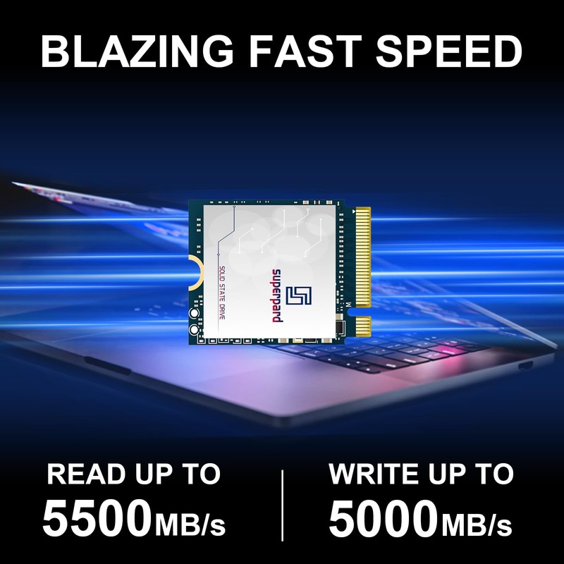Superpard M.2 2230 PCIe Gen4 SSD – Power Your Speed, Expand Your Possibilities Unlock next-level performance for gaming, content creation, and productivity with Superpard's M.2 2230 SSD. Engineered for ultra-portable devices like gaming handhelds and compact laptops, this cutting-edge storage solution delivers blazing read/write speeds up to 5,500MB/s via PCIe Gen4 x4 and NVMe 1.4 technology—10x faster than SATA SSDs. Choose from 256GB, 512GB, 1TB, or 2TB capacities to store massive game libraries, 4K media files, or professional workloads without compromise.