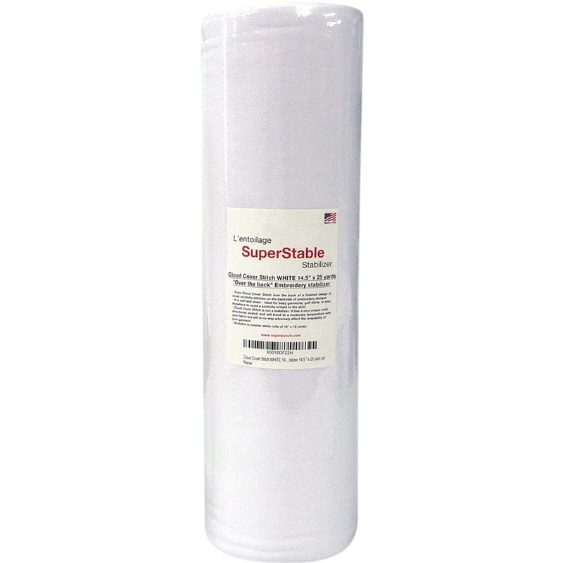 Superpunch Cloud Cover Stitch 14.5 inch x 25 Yard Roll, SuperStable Lightweight Stabilizer Iron On Over The Back Fusible, Iron On Soft Cutaway Stabilizer Embroidery Machines Backing White Made in USA