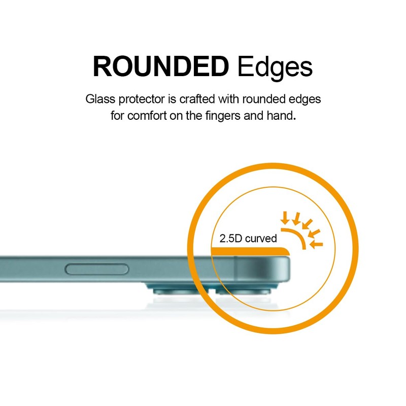 - 2.5D rounded edge glass for comfort on the fingers and hand