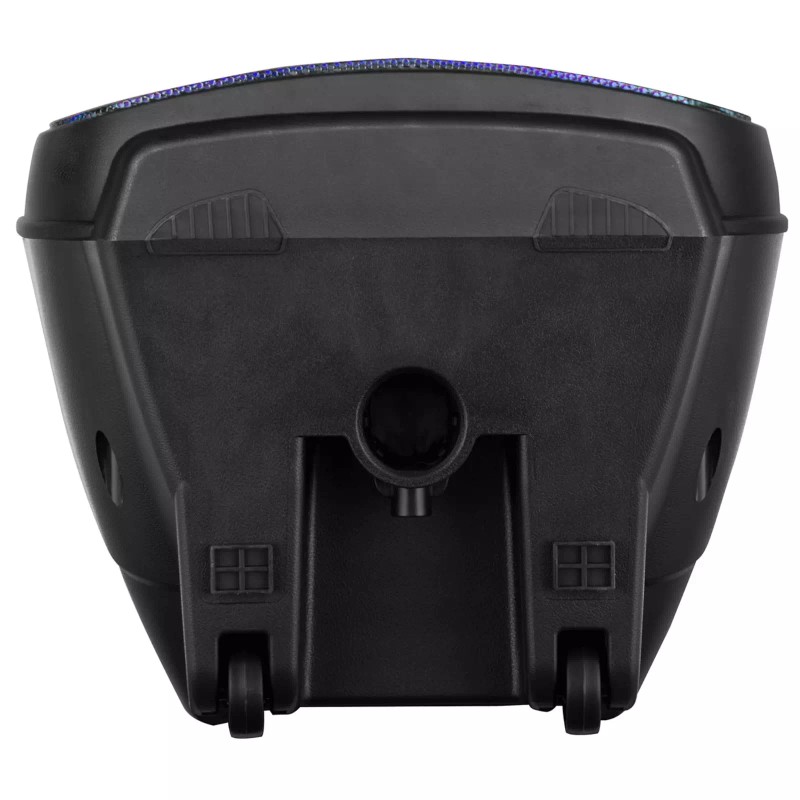 But it doesn't stop there this speaker also brings the party to life with its mesmerizing light show. Colorful LED lights dance and synchronize with the beat of your music, creating an electrifying ambiance that's sure to impress your guests. The built-in port ensures easy connectivity, while the convenient carry handle and wheels make transportation a breeze. With a power supply of DC5V, a maximum power consumption of 40W, and an RMS power of 30W, this speaker boasts exceptional performance. Its system type includes a 12" woofer and a 1.5" tweeter, delivering a frequency response of 100Hz-20KHz and an impedance of 3.6 Ohm, ensuring crystal-clear audio with every use. With a signal-to-noise ratio (S/N) of ≥75db you'll enjoy distortion-free sound, making it perfect for any occasion.